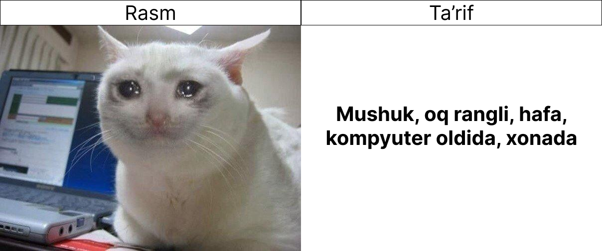 Sun'iy idrok qanday qilib matn va rasmni o'qishi, ko'rishi yoki tushunishini eslash uchun dastlab mana bu maqolani o'qib chiqishni taklif qilaman.