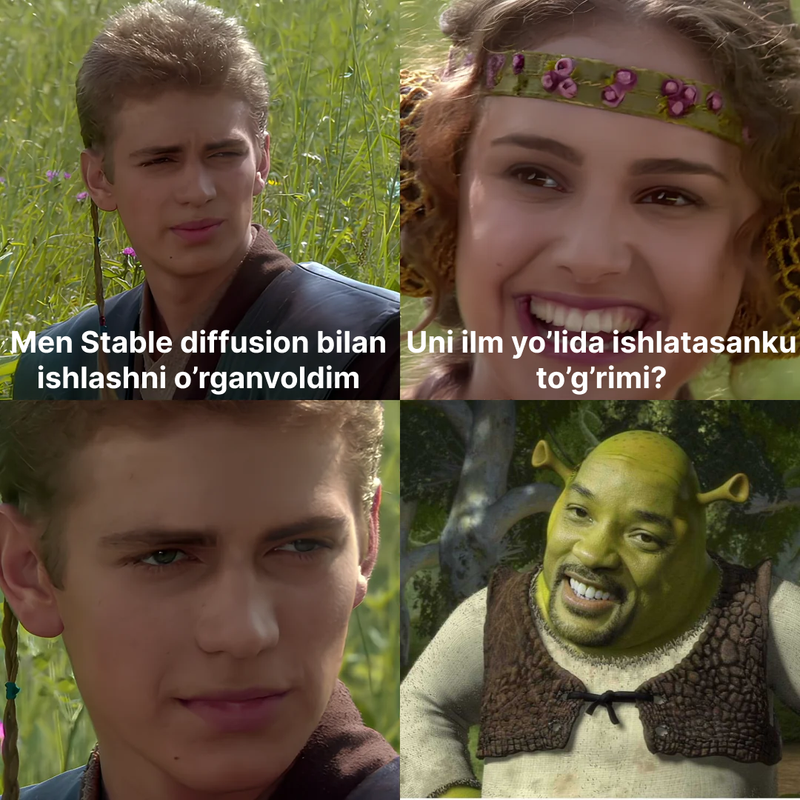 Ko‘rayotganingizday matnli so‘rovimdan haqiqiy sanʼat asari yaratildi. Ammo modul shunchaki matndan bunday chiroyli tasvirlarni qanday yaratganini tushunish uchun dastlab uni bunga qanday o‘qitilganini tushunish lozim.